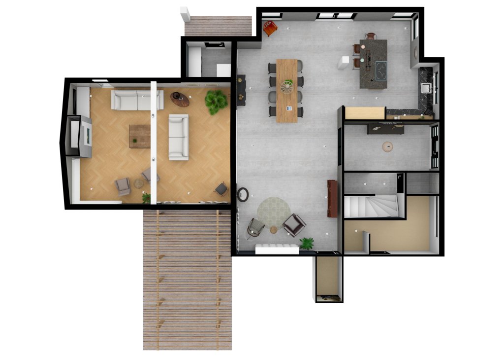 Zij maken voor u een tekening waarin uw vraag wordt verwerkt. Een aannemer is over het algemeen geen ontwerper. Er wordt een keuken gekocht, een vloer aangeschaft en dan nog nadenken over de meubels… Helaas komt u er vaak later achter dat u al aan een heleboel factoren gebonden bent!