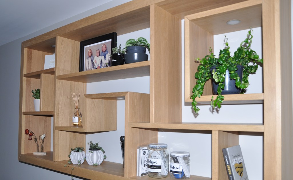 Zowel het tv meubel als de vensterbank zijn op maat gemaakt met volop bergruimte.