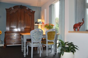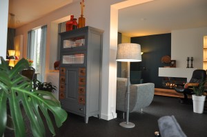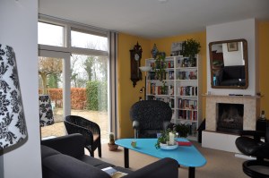 De woonkamer nu had een lastige kolom in de kamer en een verlaagd plafond in de huidige tv kamer. Ook wilden ze daar nu een soort leeshoek van maken om lekker aan tafel de krant te lezen of om wat te kunnen werken.