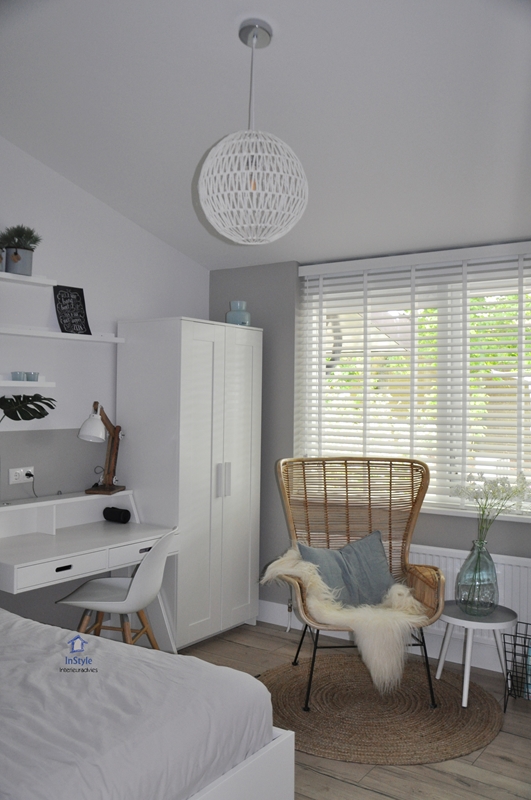 Per ruimte is er een ontwerp gemaakt. Geheel afgestemd op de wensen van de gebruiker van de ruimte, maar wel op zo’n manier dat alle ruimtes wel met elkaar verbinden. Het hele huis straalt dezelfde warme sfeer uit. Het resultaat mag er zijn! Er zijn voor elke ruimte moodboards gemaakt met een eigen kleurenpallet en een 3d impressie.