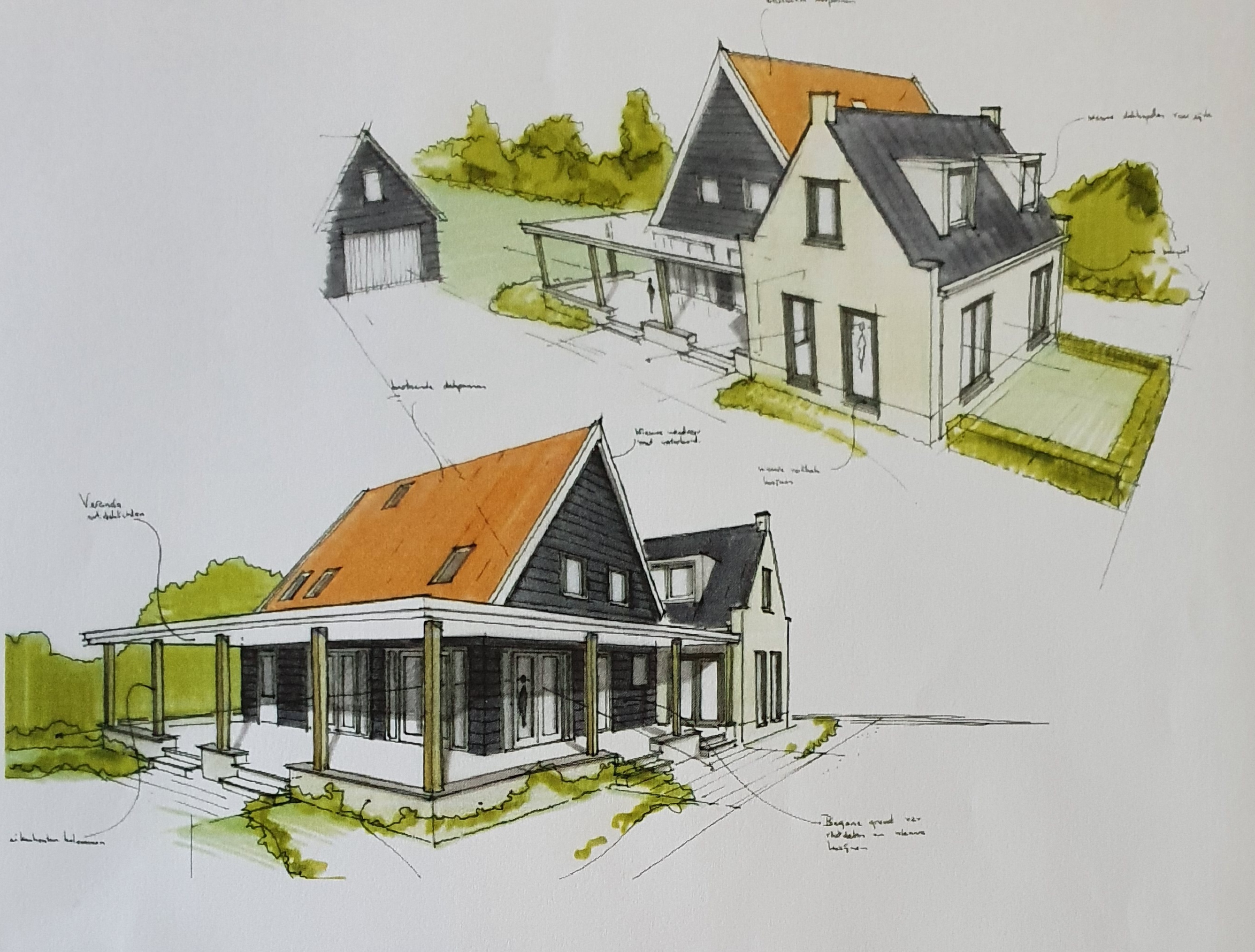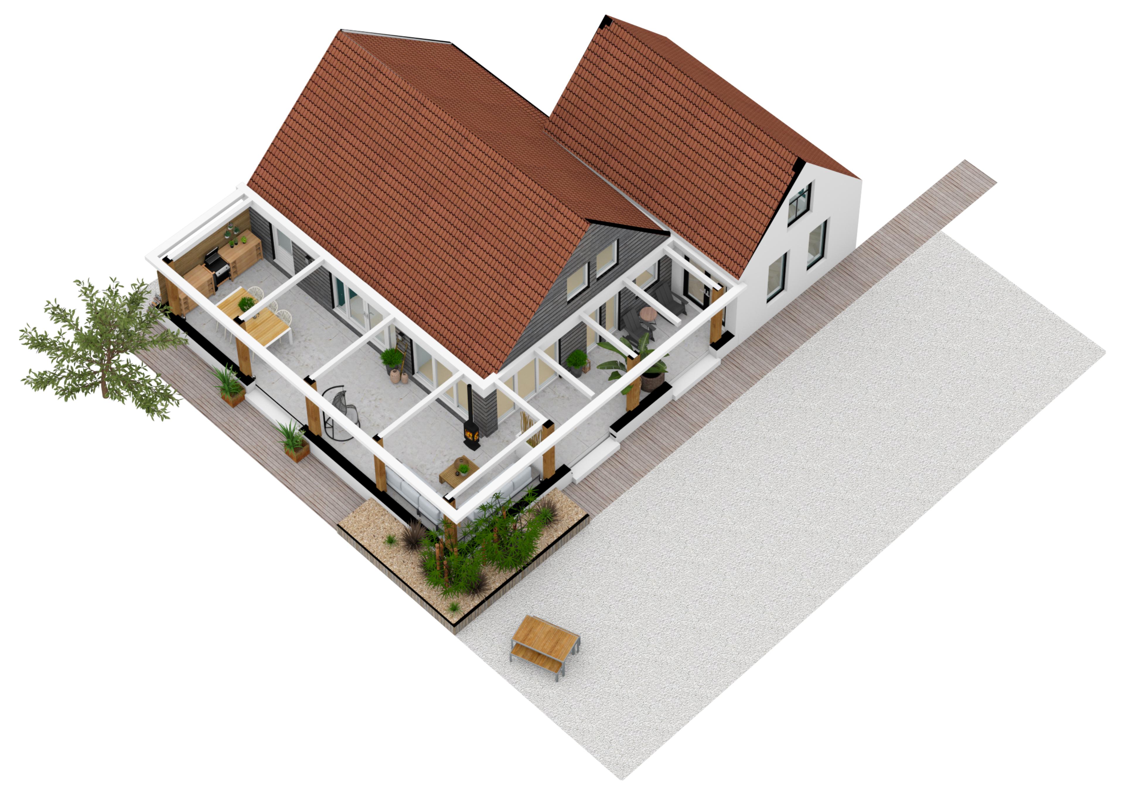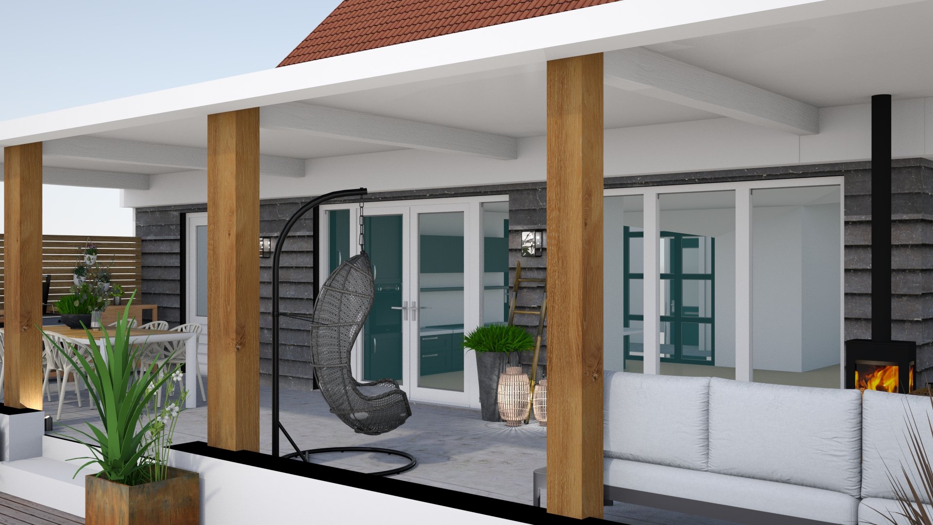 De woning had wel een behoorlijke facelift nodig. Nadat de architect de grote lijnen had uitgezet, kon InStyle aan de slag. Eén van de plannen van de architect was het uitgraven van de woonkeuken. Daar was het plafond zo laag, dat je er geen fatsoenlijke woning kon bouwen. Hierdoor ontstond er een split level tussen het bestaande huisje en de schuur. Door hier mooie brede trappen in aan te brengen is het een echte aanwinst geworden.