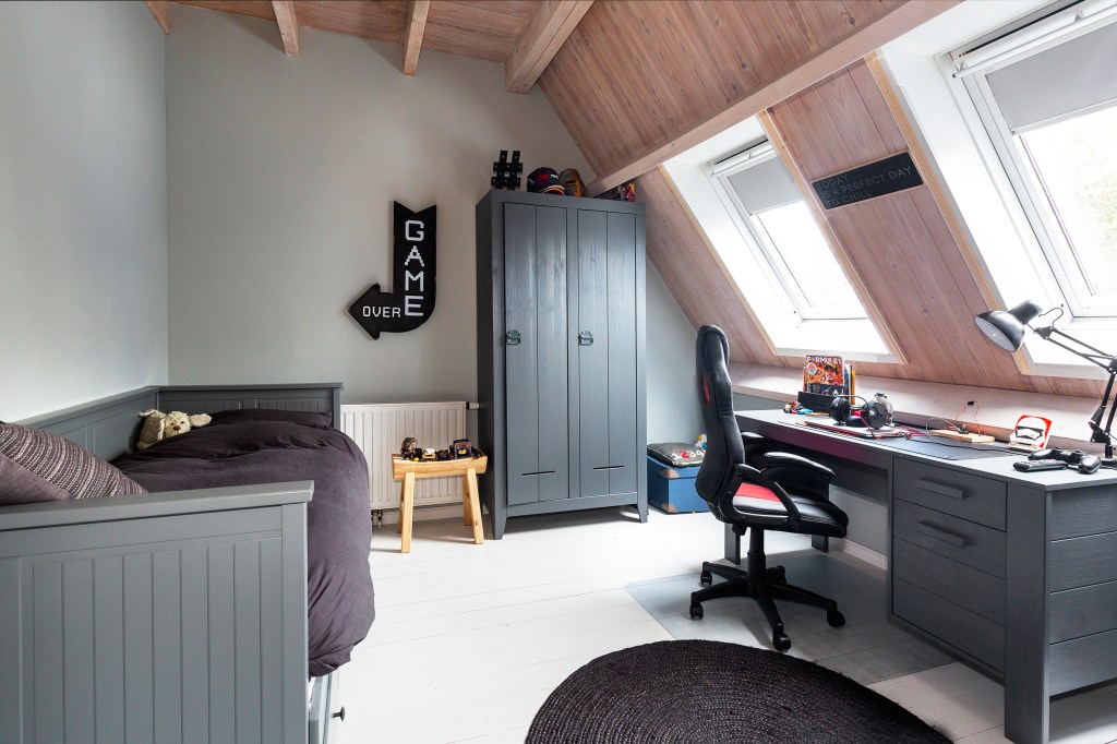 Daarentegen hebben we qua meubels juist gekozen voor een oud bankje en meidenkastje, de combinatie van oud en nieuw maakt dat het wat meer leeft.